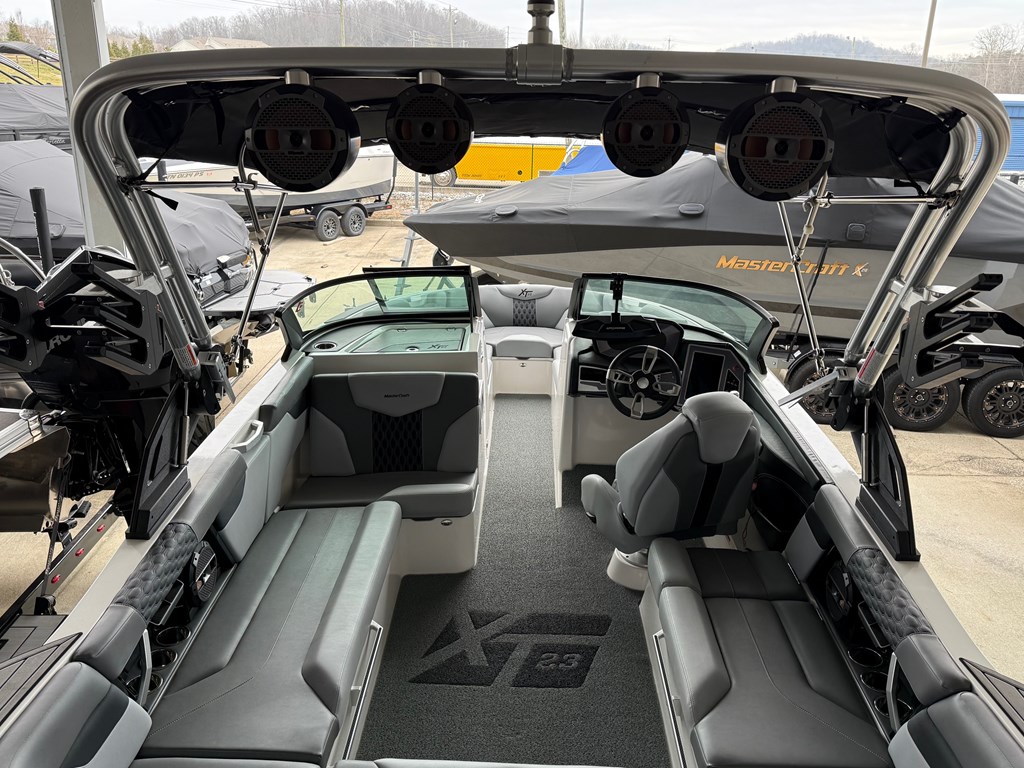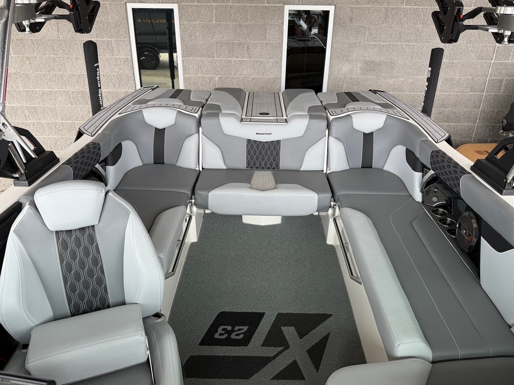 Equipped with Mastercrafts latest surf system "Surf Star". Dual screen package/ BTS windsheild/ Upgraded Deckadence Flooring package/ 4 Tower Speakers.